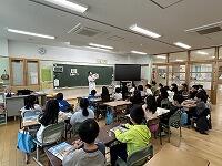 学習では、野菜が土の中でできるのか、土の上でできるのか、木の上やつるに実るのかを考えながら、クイズ形式で楽しく学びました。子どもたちは、「これはどこでできるのかな?」と友だちと話し合いながら、意欲的に取り組んでいました。