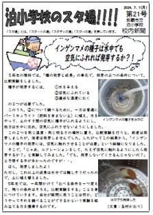 校内新聞「泊小学校のスタ場!!!!」第21号発行のお知らせ