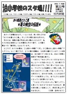 校内新聞「泊小学校のスタ場!!!!」第22号発行のお知らせ