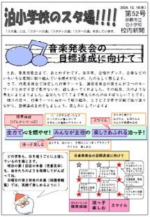 校内新聞「泊小学校のスタ場!!!!」第52号発行のお知らせ