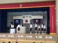 空手やプログラミング、英検、図画作文等、様々な分野から4人の児童が表彰されました。