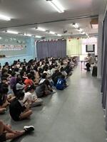 今朝は、お話朝会(保健・生活リズム)がありました。
