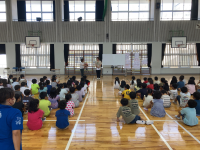 本日の朝の時間に、1学期後半開始のお話朝会が行われました。