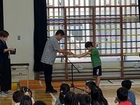 空手やプログラミング、英検、図画作文等、様々な分野から4人の児童が表彰されました。