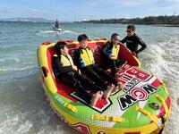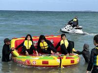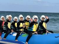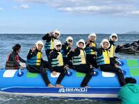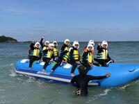 グループに分かれてバナナボートやビスケットに乗り込みます。