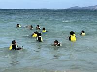 強い風が吹く中でしたが、ウェットスーツに身を固め、いざ冷たい海水へと出発です!