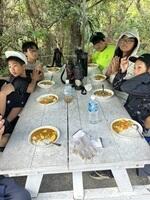 12月2、3日、若狭小5年生が元気よく自然教室に行ってきました!1日目は石川岳の登山をしました。険しい山道を友だちと声を掛け合って登り、一人も脱落することなく下山していました。また、キャンプファイヤーでは、女神の先導で、火を囲んで呼びかけたり、班のみんなとアイディアを出し合って出し物をしたりして大盛り上がりでした。最後にみんなで輪になって歌を歌い、自然教室の楽しい思い出を胸に刻んでいました。2日目は仲間と協力して野外炊飯。慣れない薪での火付けや、飯ごう炊飯、カレー作りに取り組み、全員でおいしくいただきました。