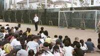今日は、火災避難訓練が行われました。理科室で火が上がった想定で、全児童、すばやく運動場に避難することができました。校長先生から、「お・か・し・も・ち」の確認と火遊びは絶対ダメとのお話を聞きました。