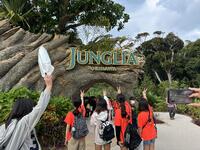 ジャングリア沖縄では、ながーい列に並んだり、ハンバーガーをほおばったり、早々とお土産を買ったりと、広い園内を元気に動き回るこども達です!
