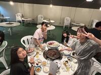 牛肉に焼き鳥、スープにゼリーとみんなで分担して焼いたり取り分けたりして、話も弾みます!