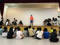 本日は、演劇鑑賞会がありました。劇団影法師さんによる「もったいないミュージカル」。1年生から6年生まで目を輝かせながら、ものを大事にすることについて学べた2時間でした。後半は、劇団員さんのリードに合わせて、体を動かしながら楽しんでいました。