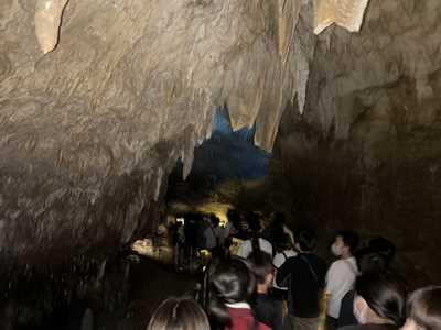 5年生は、おきなわワールドです!わくわく鍾乳洞探検、滑らないように気を付けまーす!