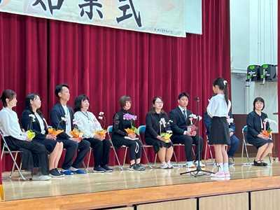 始業式に先立って行われた新任式では、児童代表の6年かえでさんから「ようこそ若狭小学校へ。若狭っ子は、新しい先生方に会うことをとても楽しみにしていたので、ぜひ仲良くなってください。若狭っ子は、みんなとすぐ仲良くなれる子が多いです。なのでわからないことがあったら、遠慮なく聞いてください。これからよろしくお願いします」と、元気に歓迎のことばを伝えてくれました。