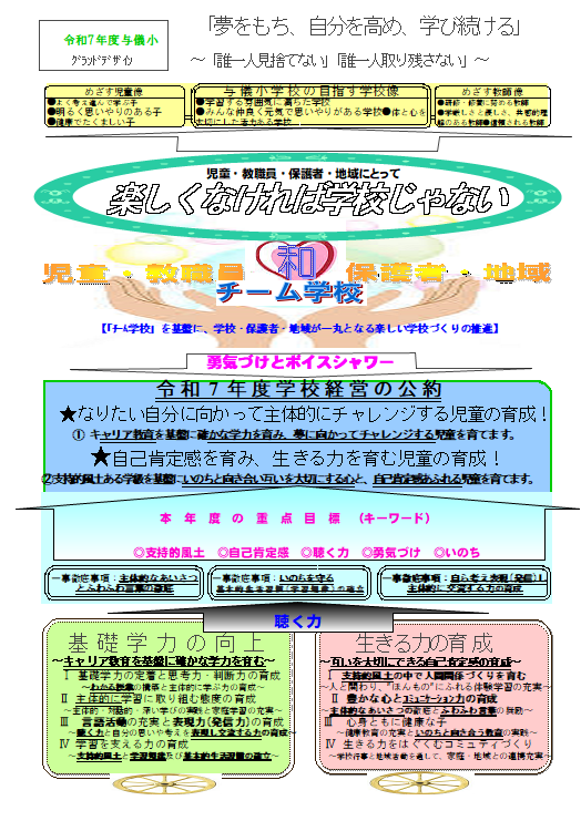 そして今年度も、そんな与儀っ子達と、与儀小学校での絆をより深め、一日一日を大切に、楽しい与儀小学校をつくっていきたいと願っています。