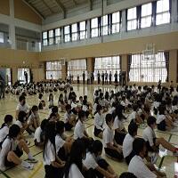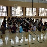 体育館でお話朝会が行われ、校長先生からお話がありました。