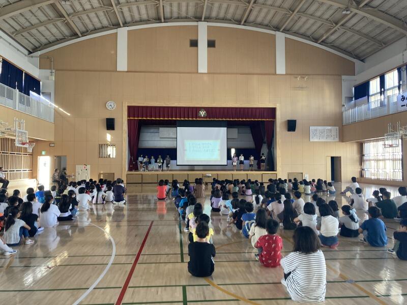 校長先生からは大谷選手の夢実現シートが紹介され、計画を立てて何かに挑戦することの大切さについてお話がありました。児童たちは真剣な眼差しでお話を聞いていました。
