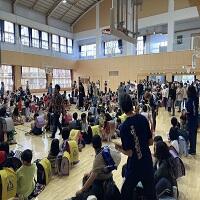 あいにくの雨天でしたが、たくさんの児童と保護者の方々に集まっていただきました。
