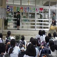 その後、新しく与儀小の仲間に加わった3名の転入生の紹介がありました。