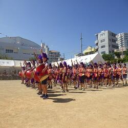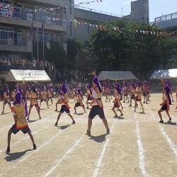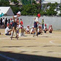 1~3年生はダンス、4年生はドッジボール対決、5年生は5色綱引き対決をしました。
