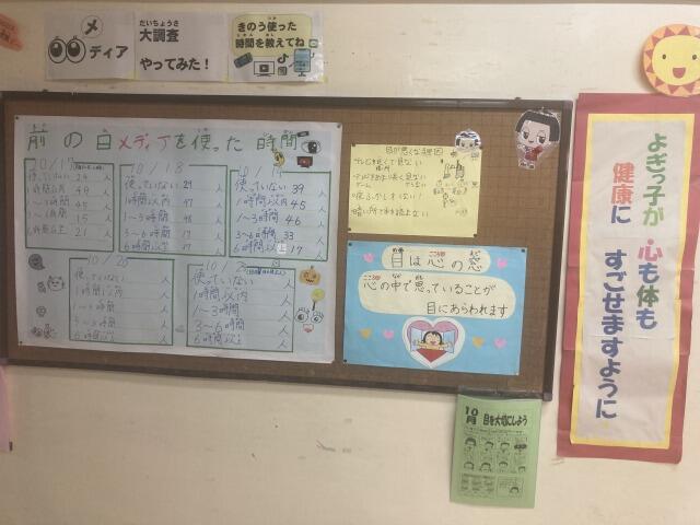 メディア大調査では、与儀ッ子が調査の前日、どのくらいの時間メディアを使ったかを調べ、給食時間に結果を発表してくれます。