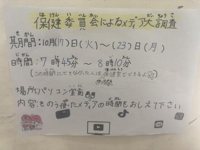 10月の保健目標「目を大切にしよう」にちなんだ企画だそうです。