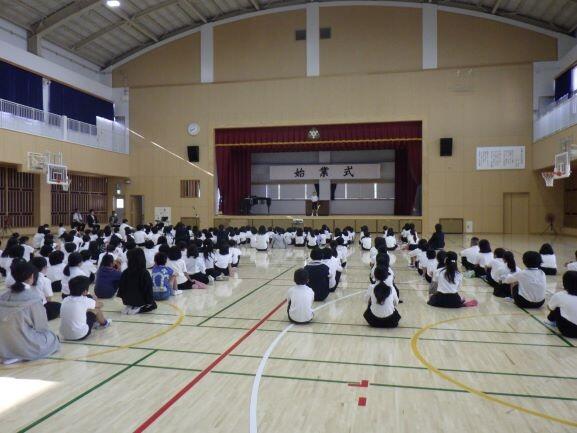 8時から体育館で出発式が行われました。