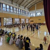 5月23日(金)は一年生の入学を祝う会が行われました。2年生と4年生はダンスを披露し、3年生と5年生はプレゼントを贈呈しました。6年生は毎年恒例のアトラクション「魔法の絨毯」を行い、どの学年も1年生を楽しませ、笑顔いっぱいの会となりました。