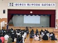 1/15(木)・16(金)に校区内にある真和志小、上間小、与儀小の3校の6年生を招いて「中学校見学会」を実施しました。見学会冒頭では中学校について生徒指導主事からの話、校内施設見学、1年生の「キャリアスマイルプロジェクト発表会」を見学しました。