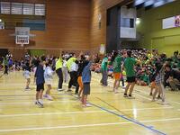 5年生との三番勝負(玉入れ、綱引き、大なわ)では、白熱した勝負が見られました。5年生も頑張って