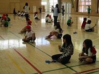 体育館で、児童全員が一同に集まり、感謝の思いを込めた各学年の元気あふれるダンスや
