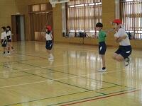 自分が選んだとび方で、何回までとべるかをお友達に数えてもらって、先生に報告します。