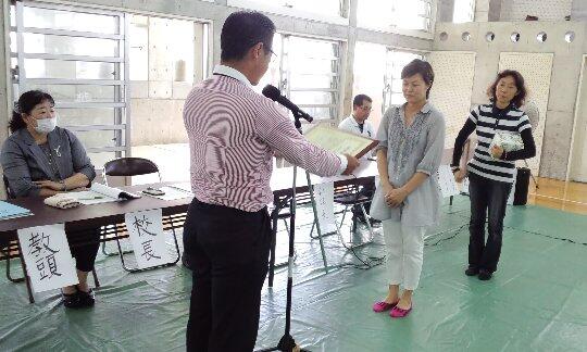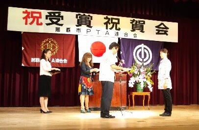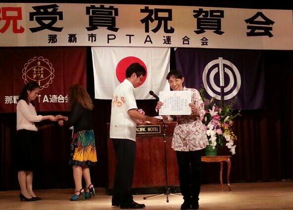 去る5月28日(土)午後4時30分より,那覇市PTA連合会会長賞の受賞祝賀会があり,長年にわたり積極的に活動した功績が認められ,本校元副会長の米盛敦子さんが表彰されました。関連記事→H28kyoto05.pdf