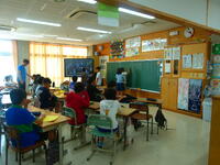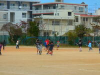 那覇市の指導員の方も派遣し、ドッチビー鬼ごっこをクラス総当たり戦で行いました。