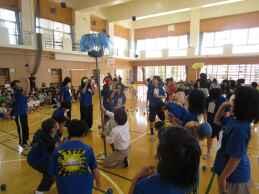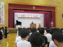 今年度最後の音楽朝会。はじめにみんなで「すてきな友達」を歌いました。歌声も素敵な真和志っ子です。