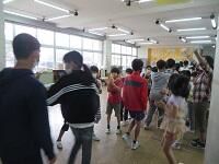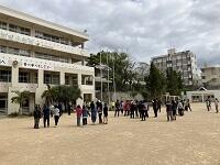 昼休みに実施したので運動場や教室、中庭など