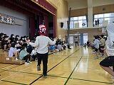 5校時体育館で全児童が集まって卒業を祝う会を行いました