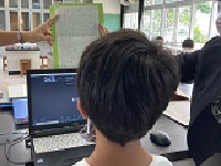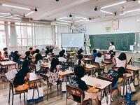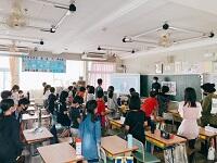授業の終わりで友達と一緒に活動している写真を見て