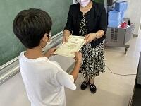 朝のお話朝会では一学期をふり返っての児童の発表や、がんばった児童の表彰、そして今学期で離任される先生方の紹介がありました。