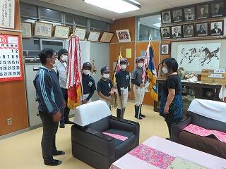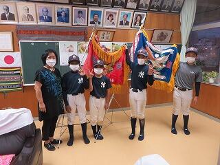 さった10月21日(木)に、真和志ヤンキースが夏季真和志地区学童軟式野球大会での優勝報告に来ていました。コロナ禍で十分な練習が出来なかった中での優勝。よく頑張りました!