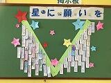 各学年の掲示板にはみんなの願いが込められた短冊が掲示されています