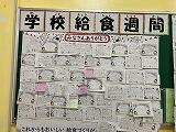 配膳室前に学校給食週間にちなんだ掲示・展示コーナーが設置されています