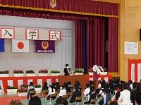 ※昭和23年9月に現在の校章を制定「本気でやる、真心を込める」という意の [真] の字 を中心 に おき、真和志の和志(わし)になぞらえ鷲 が羽を広げ 、その羽で「真」の字 を囲うような図案にしてある。鷲が力強くはばたくように、学校が発展していくことを願っている。