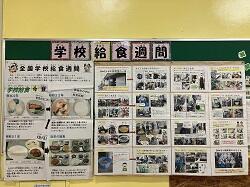1階配膳室前には給食週間に関する掲示や