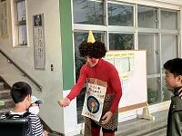 明日の節分の前に真和志小に一足早くオニがやってきました
