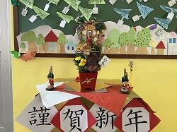 教室やワークスペースには新年の掲示が見られます