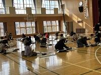 6年生は体育館で全員そろって書初めしました
