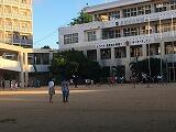 ※昭和23年9月に現在の校章を制定「本気でやる、真心を込める」という意の [真] の字 を中心 に おき、真和志の和志(わし)になぞらえ鷲 が羽を広げ 、その羽で「真」の字 を囲うような図案にしてある。鷲が力強くはばたくように、学校が発展していくことを願っている。