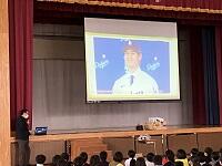 ※昭和23年9月に現在の校章を制定「本気でやる、真心を込める」という意の [真] の字 を中心 に おき、真和志の和志(わし)になぞらえ鷲 が羽を広げ 、その羽で「真」の字 を囲うような図案にしてある。鷲が力強くはばたくように、学校が発展していくことを願っている。