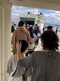 バスの中では歌ったりクイズをしたり楽しく過ごし、いよいよフェリーで伊江島へ
