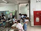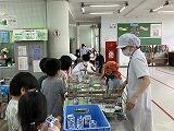 1年生の給食の配膳をお手伝いしたり
